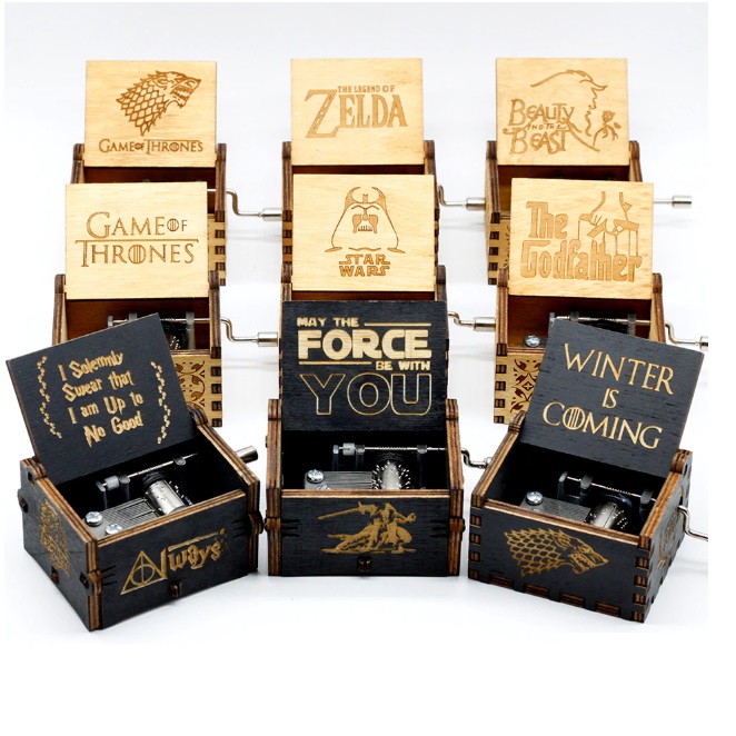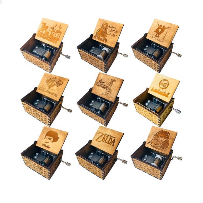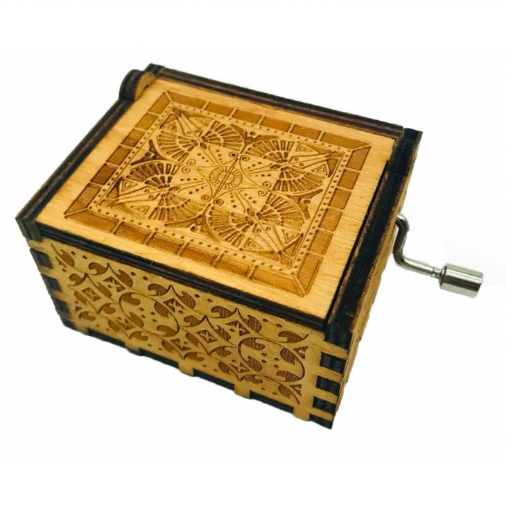 Drevená hracia skrinka ktorá ukrýva tóny, ktoré určite poznáme všetci z nás. Skrinka prehráva po zatočení kľučkou jednu z najznámejších filmových melódií všetkých čias a to z ústrednej pieseň z filmu Pán prsteňov. Nepotrebujete žiadne batérie alebo pripojenie k elektrickej sieti, stačí iba váš ručný pohon. Skvelý zberateľský predmet pre všetkých fanúšikov tejto ságy, krásny darček.