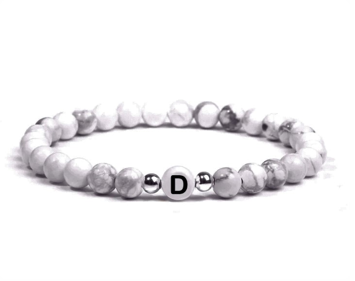 Úvod » Náramky z lávových kameňov » Náramky PRE PÁRY » Náramek s iniciály z howlitových kamenů - D