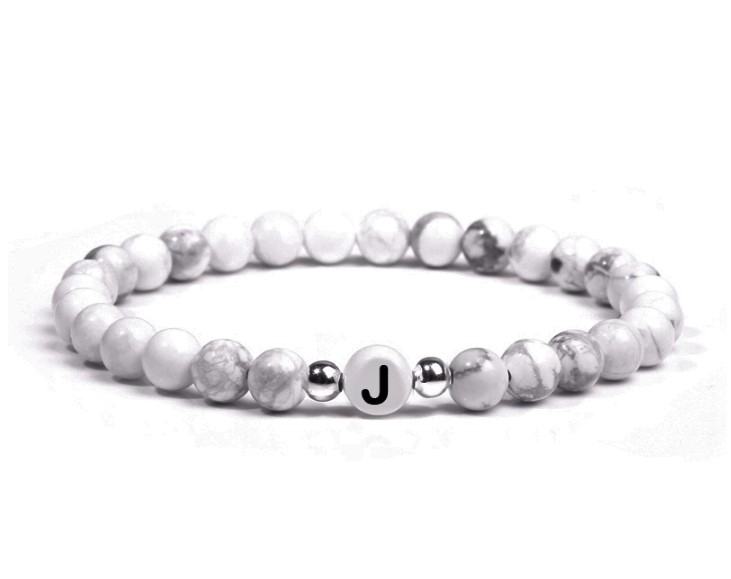 Úvod » Náramky z lávových kameňov » Náramky PRE PÁRY » Náramek s iniciály z howlitových kamenů - J