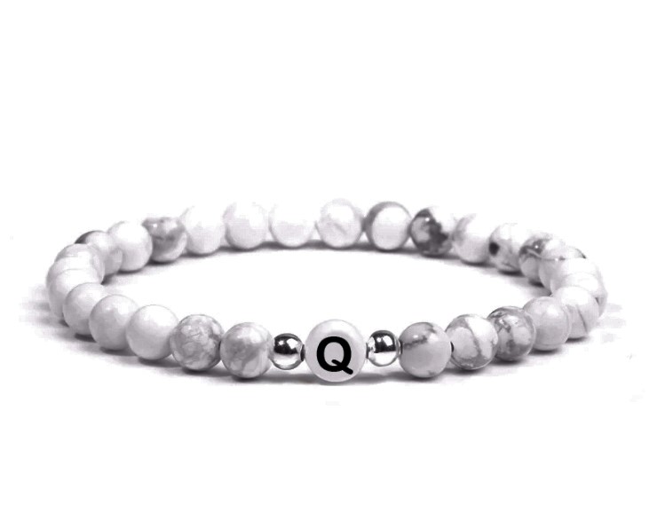 Úvod » Náramky z lávových kameňov » Náramky PRE PÁRY » Náramek s iniciály z howlitových kamenů - Q