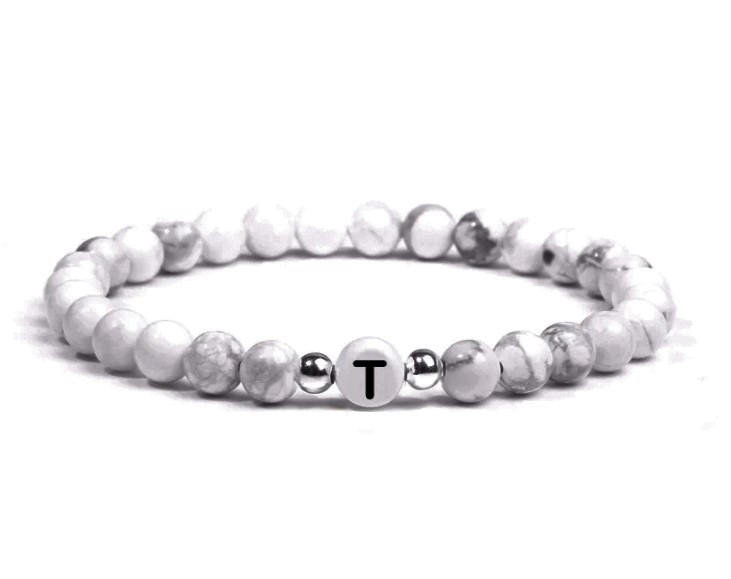 Náramek s iniciály z howlitových kamenů - T