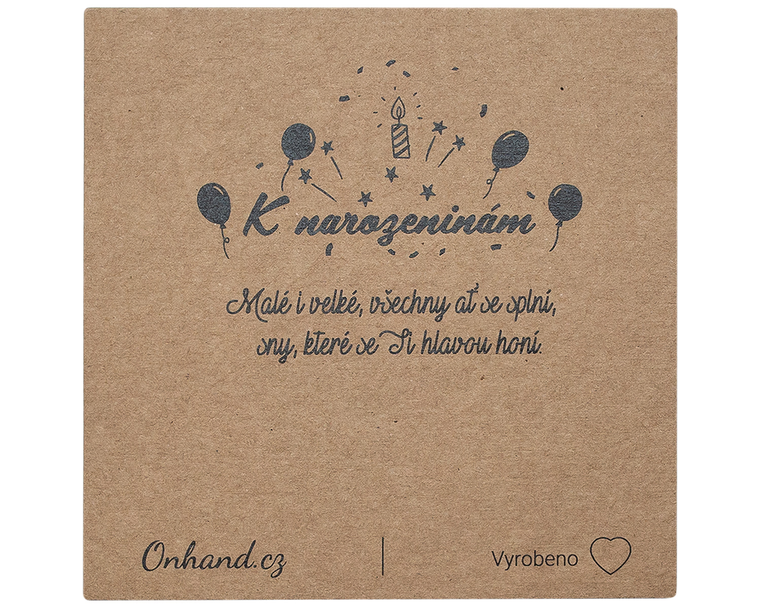Nevybrali ste darčekovú kartu s náramkami z našej veľkej ponuky? Nevadí, tu máte možnosť nakombinovať si vlastné náramky podľa vášho výberu. Darčeková karta na náramky "Narodeninám" - je prekvapivo ideálnou voľbou, ak hľadáte pre blízku osobu darček k narodeninám. Jedná sa o milé prianie, ktoré poteší každého z nás. Odporúčame kombináciu s náramky so znamením zverokruhu.